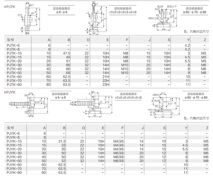 PJTK-6-N,PJTK-6-S,PJTK-6-NE,PJTK-6-SE,PJTK-8-N,,PJTK/PJYK系列雙層吸盤/固定金屬底座