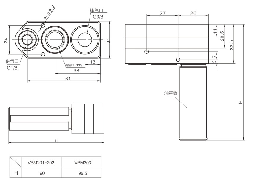D | G1/8 | G3/8 | 內(nèi)置消音器 |