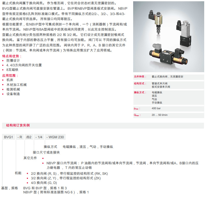 BVG1-R/B2-1/4-WGM230,BVP1-S/B2-1/4-WGM230,NBVP16-ZK/B2-1/4-WGM230,截止式換向閥