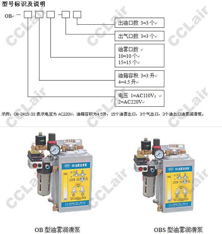 詳細信息 OB-1415-33,OB-2415-33,OB-1310-33,OB-2310-33,油霧潤滑泵