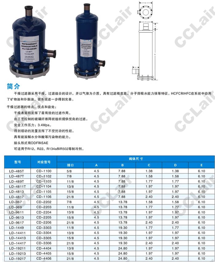 詳細(xì)信息 LD-485T,LD-487T,LD-489T,LD-4811T,LD-4813,LD-9613,LD-14417,LD-19211,可換芯干燥過濾器
