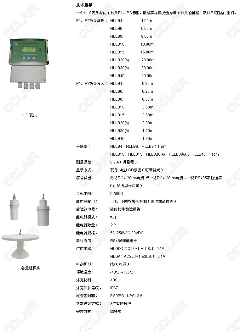 HLLB4,HLLB6,HLLB8,HLLB10,HLLB15,HLLB20(A),HLLB30(A),HLG型超聲波液位差計