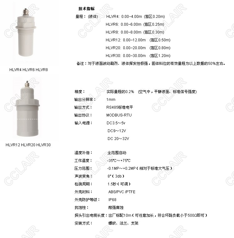 詳細信息 HLVR4,HLVR6,HLVR8,HLVR12,HLVR20,HLVR30,HLVR數(shù)字基本型超聲波液位變送器