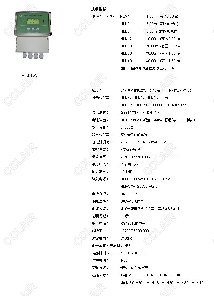 HLM4,HLM6,HLM8,HLM12,HLM20,HLM30,HLM40,HLM分體式超聲波物位計(jì)