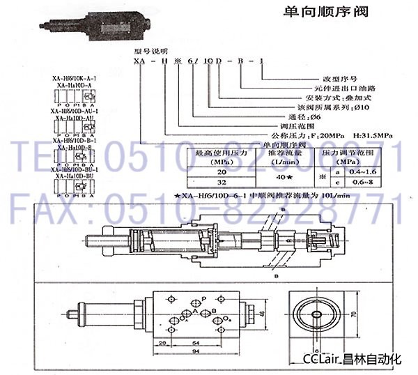 XA-Fc6/10D-A-1,XA-Fa6/10D-AU-1,XA-Fc6/10D-AU-1,XA-Fa10D-AU,XA-Fc10D-AU,XA-Fa6/10D-B-1,單向順序閥