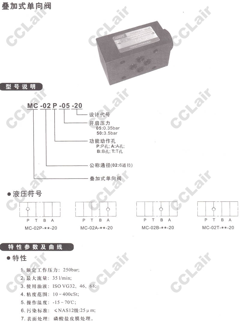 MC-02P-05-20,MC-02A-05-20,MC-02B-05-20,MC-02T-05-20,MC-02P-50-20,MC-02A-50-20,疊加式單向閥