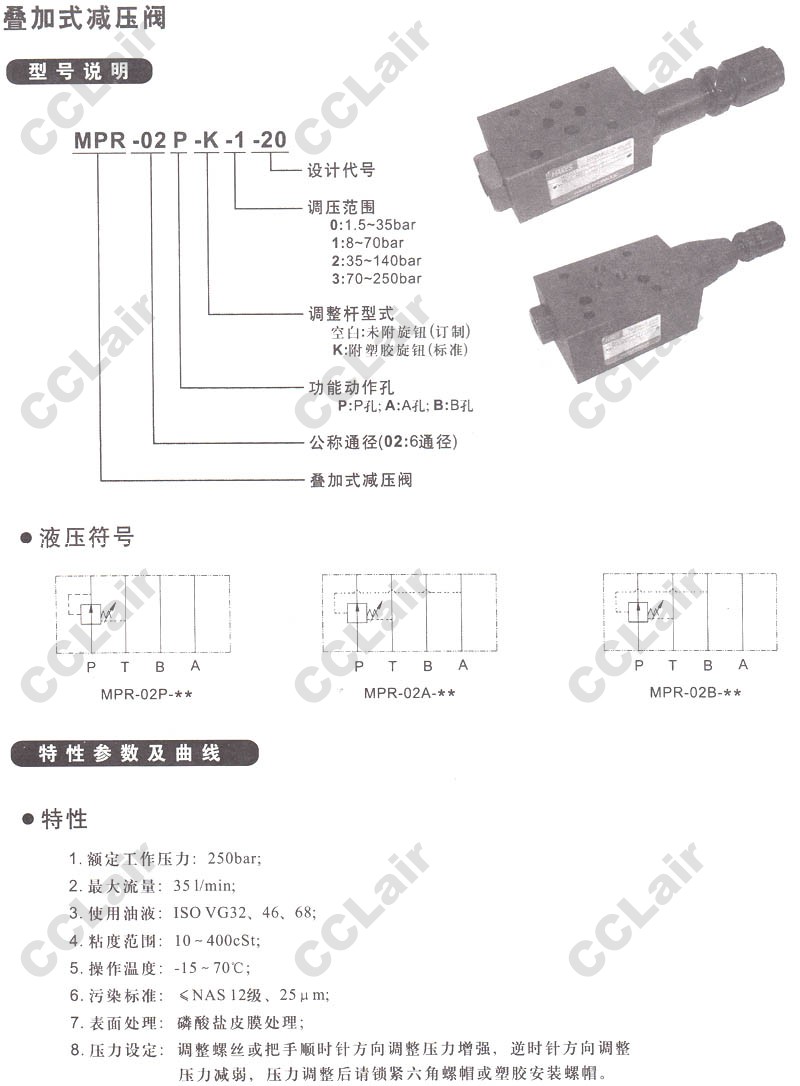 MPR-02P-K-1-20,MPR-02P-1-20,MPR-02A-K-0-20,MPR-02B-K-2-20,MPR-02B-K-3-20,MPR-02A-3-20,疊加式減壓閥
