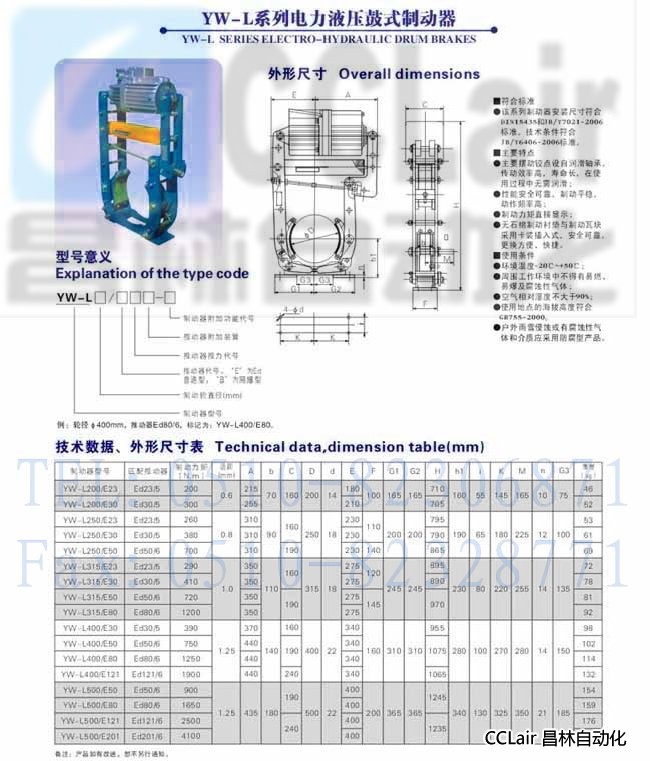 YW-L250/E23,YW-L250/E30,YW-L250/E50,電力液壓鼓式制動(dòng)器