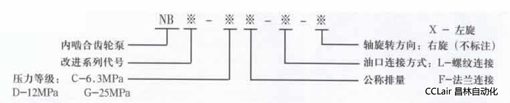 NB(GPA)低噪音內(nèi)嚙齒輪泵型號說明: