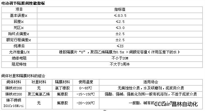 電動(dòng)調(diào)節(jié)隔膜閥主要技術(shù)參數(shù)