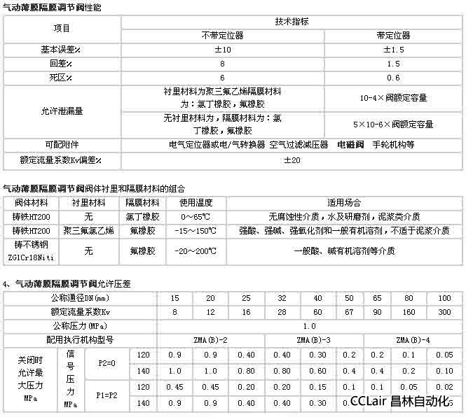 氣動(dòng)薄膜隔膜調(diào)節(jié)閥主要技術(shù)性能指標(biāo)
