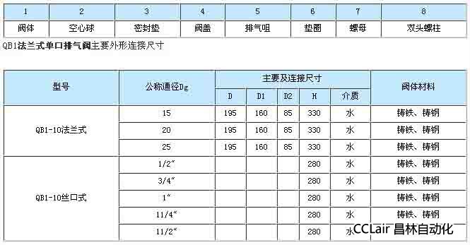 QB1法蘭式單口排氣閥主要由閥體、閥門、上蓋、閥桿、浮球、排氣嘴等組成。用于小口徑管道上管子為φ50-200,它作為管道的排氣作用,使管道不會(huì)出現(xiàn)閉氣、氣阻,如水泵停電時(shí)管內(nèi)隨時(shí)會(huì)出現(xiàn)負(fù)壓力,自動(dòng)吸氣可保護(hù)管道安全。
