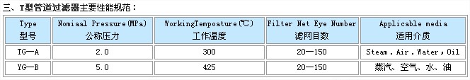 產品特點:TG型過濾器適用于蒸汽、空氣、煤油、水等配管上排除銹渣及異物保護閥門及設備。T型管道過濾器,管道過濾器,過濾器。