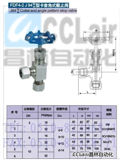 詳細(xì)信息 J94W-16,J94W-25,J94W-64,J94W-160,卡套角式針型閥
