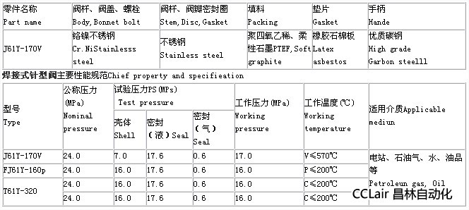 J61Y焊接式針型閥主要零件材料Materials for main parts