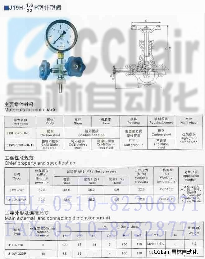 詳細信息 J19H-320,J19H-320P,儀表針型閥