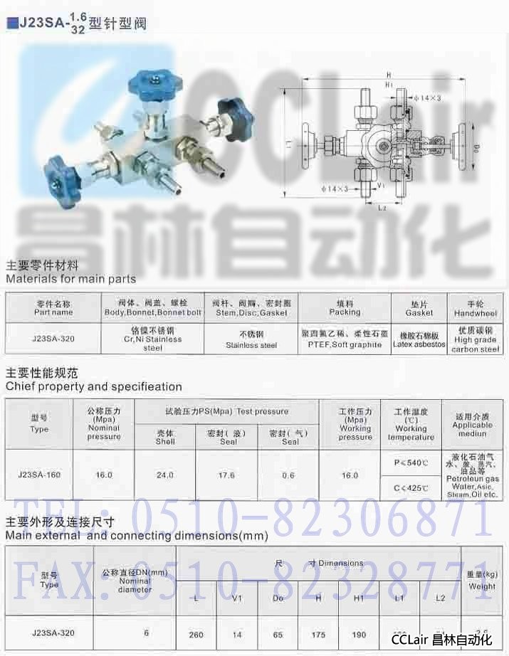 詳細(xì)信息 J23SA-160,J23SA-320,外螺紋針型閥組合閥