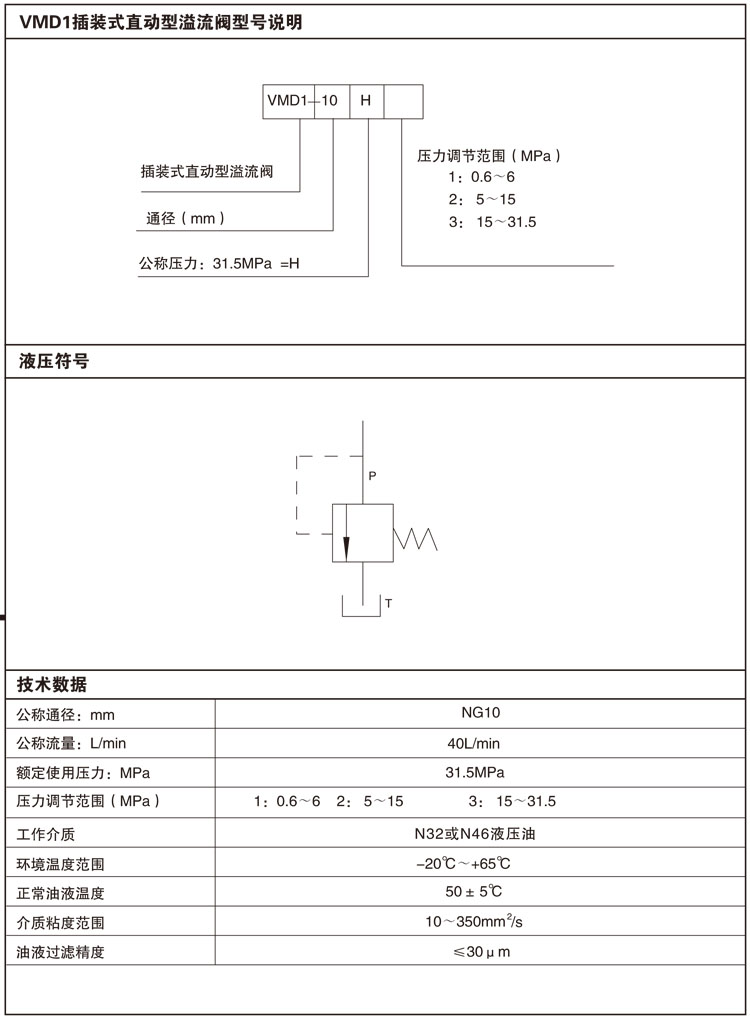 VMD1-10H1,VMD1-10H2,VMD1-10H3,插裝式直動(dòng)型溢流閥