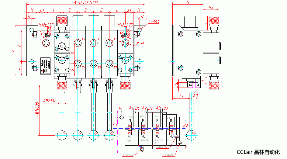 ZS1-L10H-2T3W-2Y30,表示:前二片閥是彈簧復(fù)位,“Y”型機能;后三片閥是鋼球定位,“O”型機能。