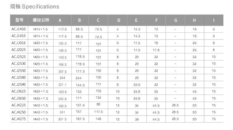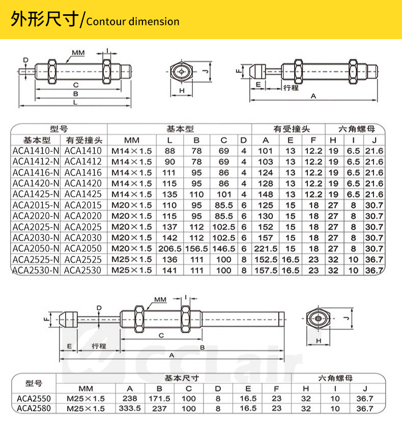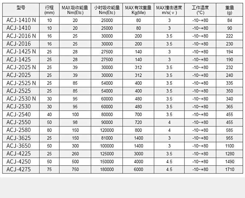 ACJ1007,ACJ2020,ACJ3325,ACJ1210,ACJ1412,ACJ2550,ACJ3625,ACJ2725,ACJ3650,ACJ2750,ACJ2525,ACJ3350,ACJ可調(diào)式緩沖器