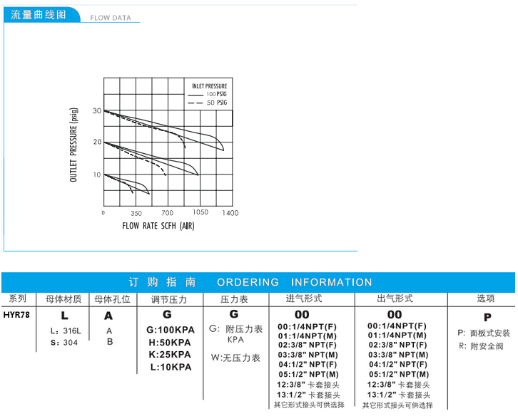 母體螺紋:進(jìn)出氣接口1/2" NPT(F),