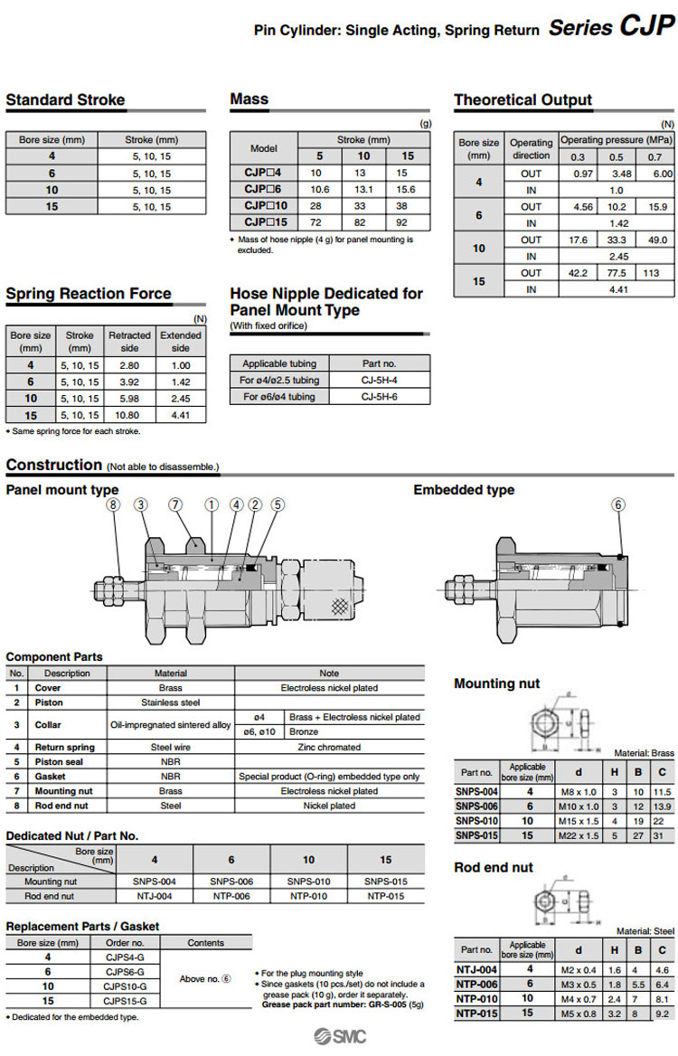 CJPB4-5H4,CJPB6-5H4,CJPB10-5H4,CJPB15-5H4,CJPS4-5H4,CJPS6-5H4,CJPS10-5H4,CJPS15-5H4,SMC針型氣缸