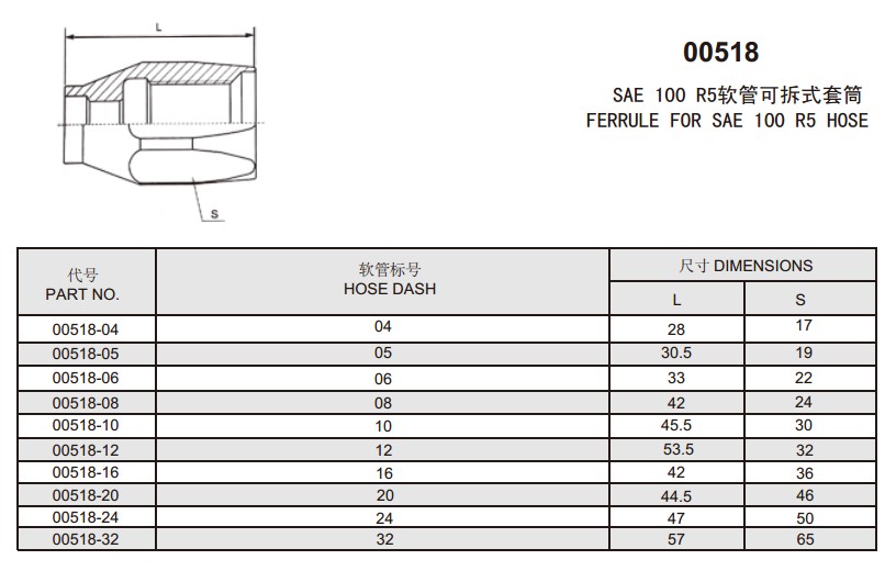 00518-04,00518-05,00518-06,00518-08,00518-10,00518-12,00518-16,00518-20,00518-32,00518-24,扣壓式軟管接頭