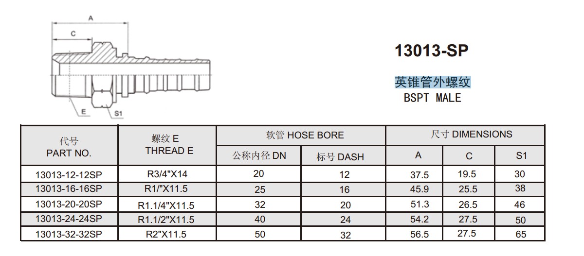 13013-12-12SP,13013-16-16SP,13013-20-20SP,13013-24-24SP,13013-32-32SP,扣壓式軟管接頭