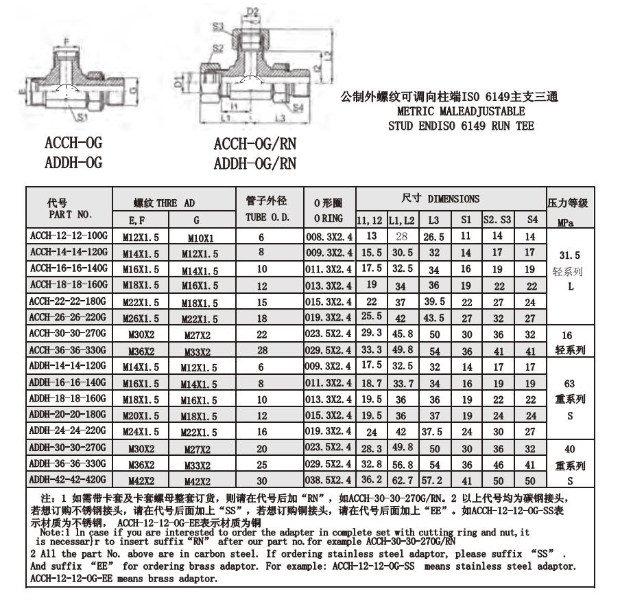 ACCH-12-12-100G,ACCH-26-26-220G,ACCH-30-30-270G,ADDH-42-42-420G,ADDH-30-30-270G,公制螺紋卡套接頭