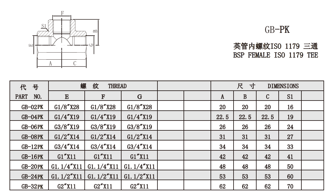 GB-02PK,GB-04PK,GB-06PK,GB-08PK,GB-12PK,GB-16PK,GB-20PK,GB-24PK,GB-32PK,內(nèi)螺紋三通接頭