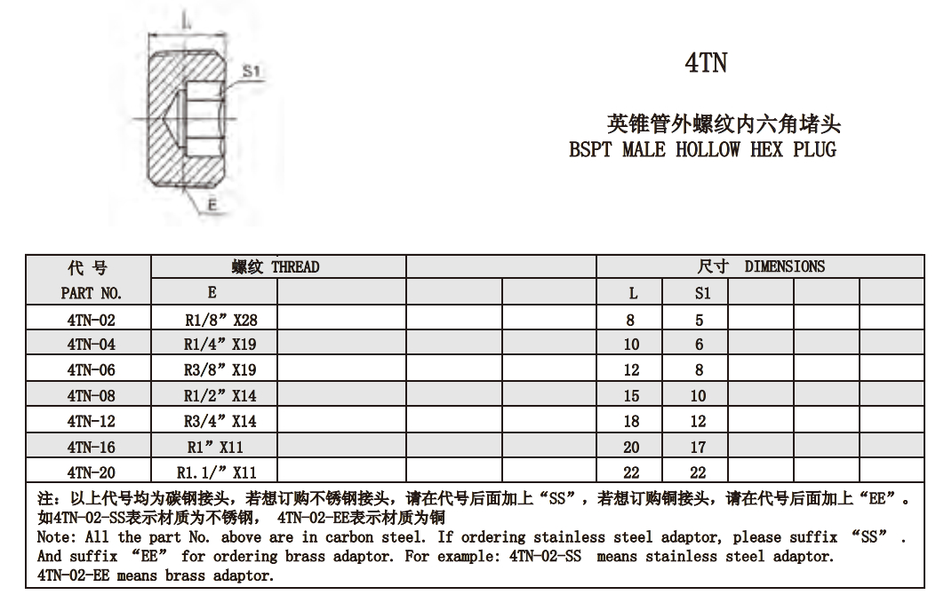 4TN-02,4TN-04,4TN-06,4TN-08,4TN-12,4TN-16,4TN-20,內(nèi)六角堵頭