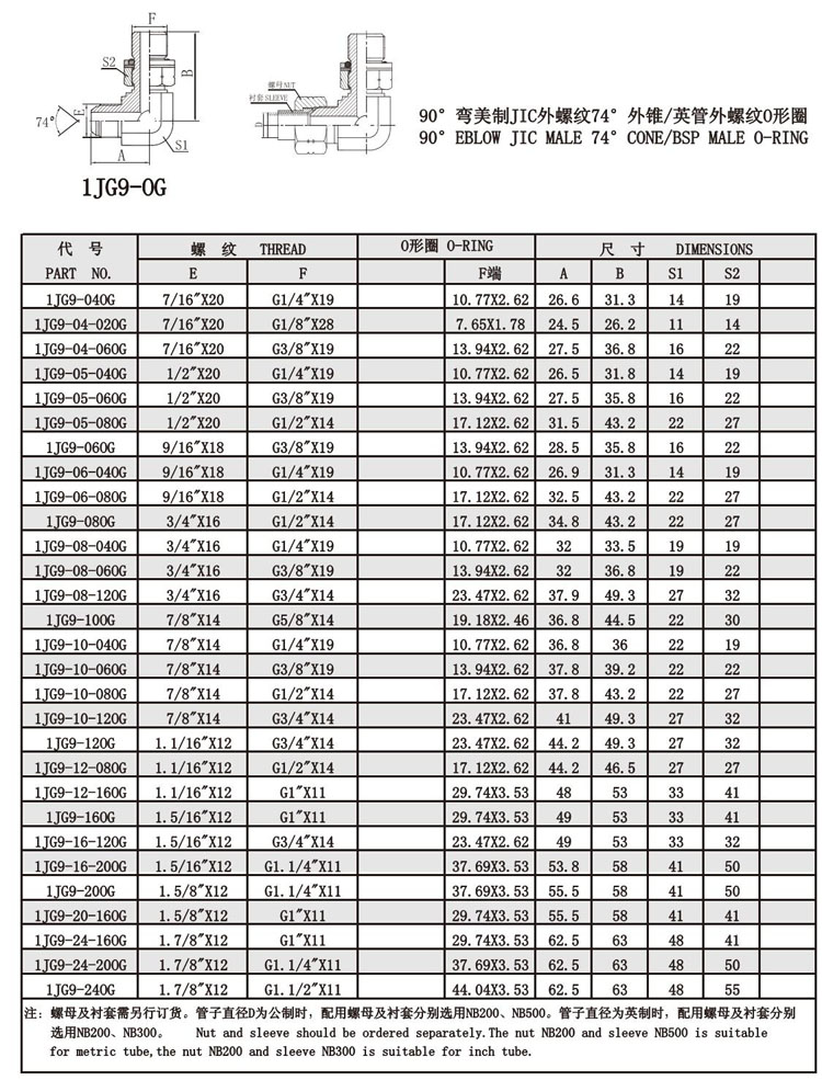 1JG9-040G,1JG9-060G,1JG9-080G,1JG9-100G,1JG9-120G,1JG9-160G,1JG9-200G,1JG9-240G,美制螺紋74°錐面接頭