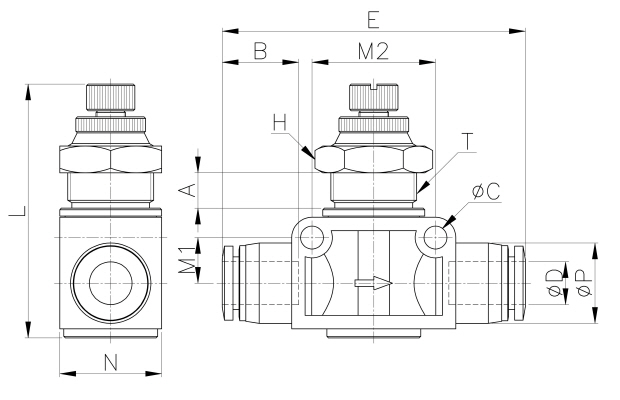 Model | ¢D | ¢P | T | L/MIN | L/MAX | A | E | N | ¢C | B | H(Hex) | M1 | M2 | WEIGHT(g) | BOX(EA) |