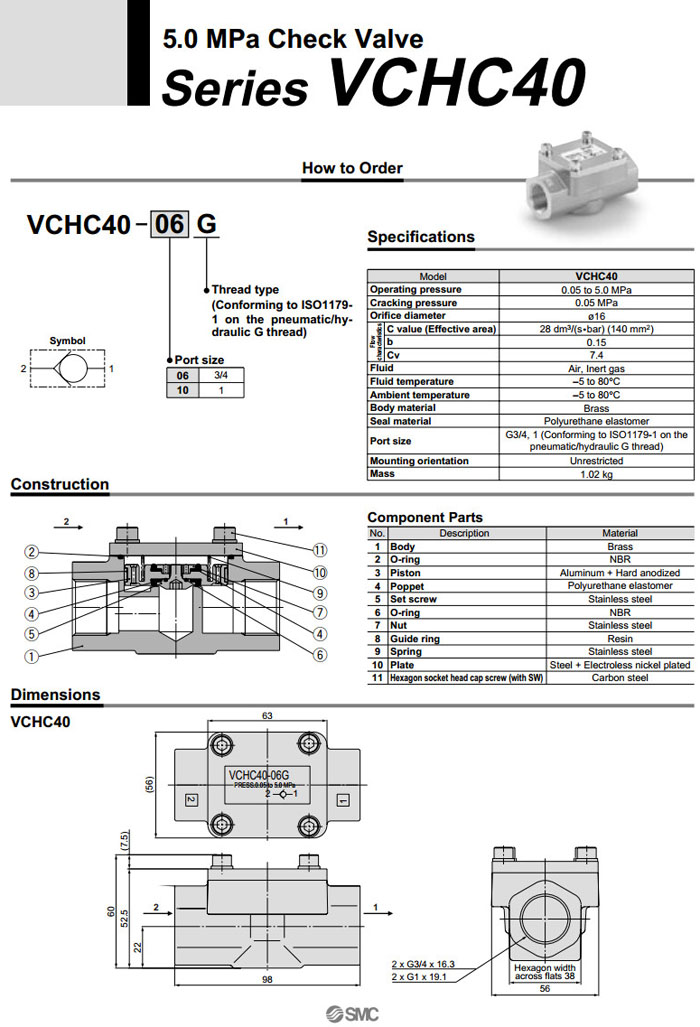 詳細(xì)信息 VCHC40-06G,VCHC40-10G,SMC止回閥