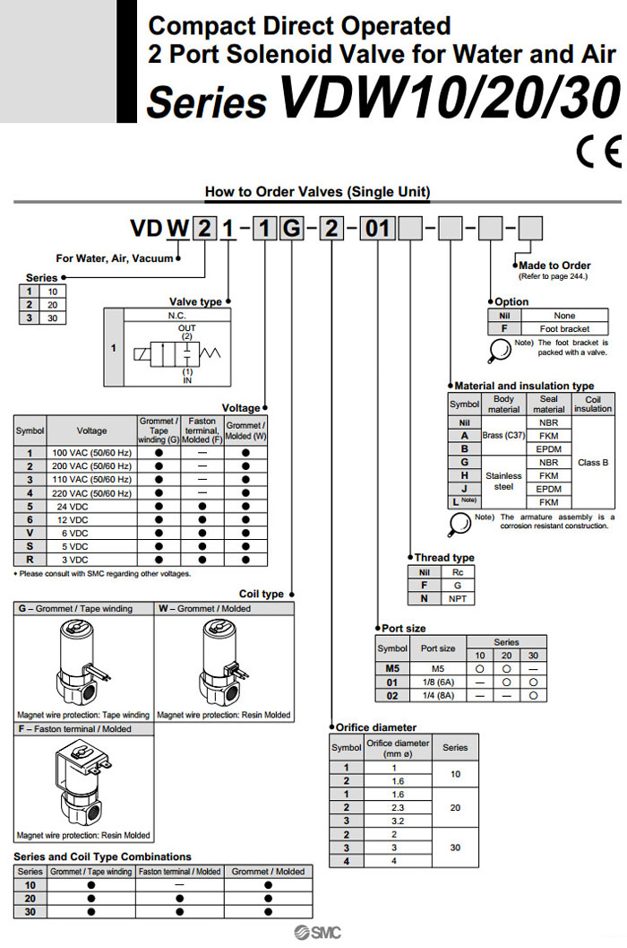 VDW11-1G,VDW11-1W,VDW31-1G,VDW21-1G,VDW31-5F,VDW31-1W,VDW31-6F,SMC直動(dòng)式2通電磁閥