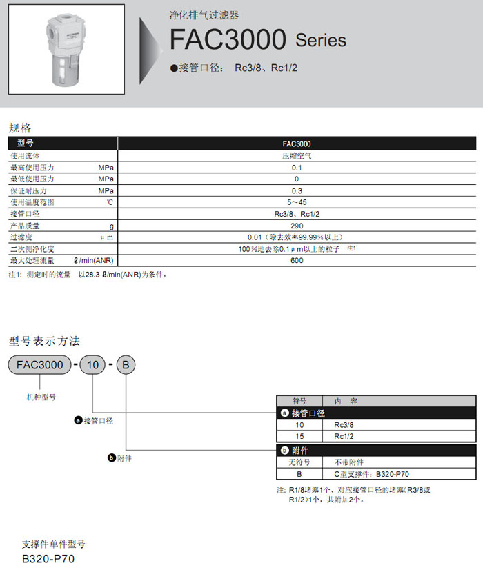 詳細信息 FAC3000-10,FAC3000-15,CKD凈化排氣過濾器