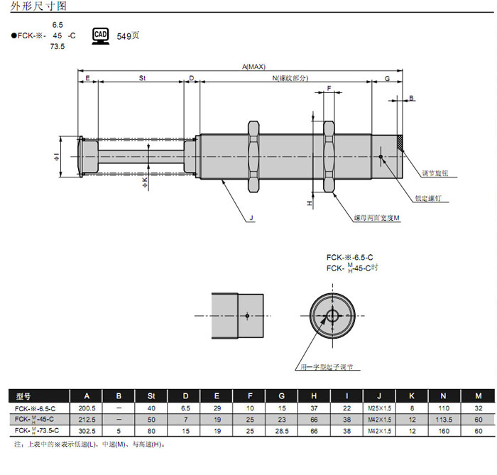FCK-H-0.18,FCK-H-0.5,FCK-H-0.6,FCK-H-1,FCK-H-3,FCK-H-5,FCK-H-6.5,FCK-H-8.1,CKD緩沖器