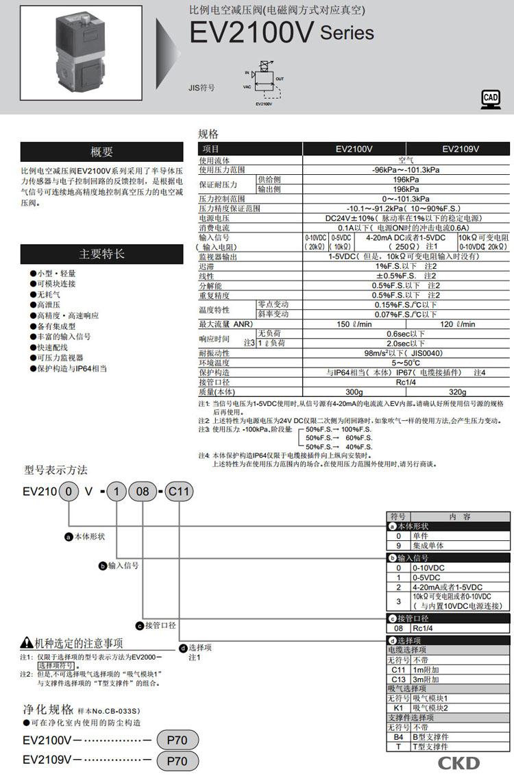 EV2100V-008,EV2100V-108,EV2100V-208,EV2100V-308,EV2109V-008,EV2109V-108,EV2109V-208,EV2109V-308,CKD比
