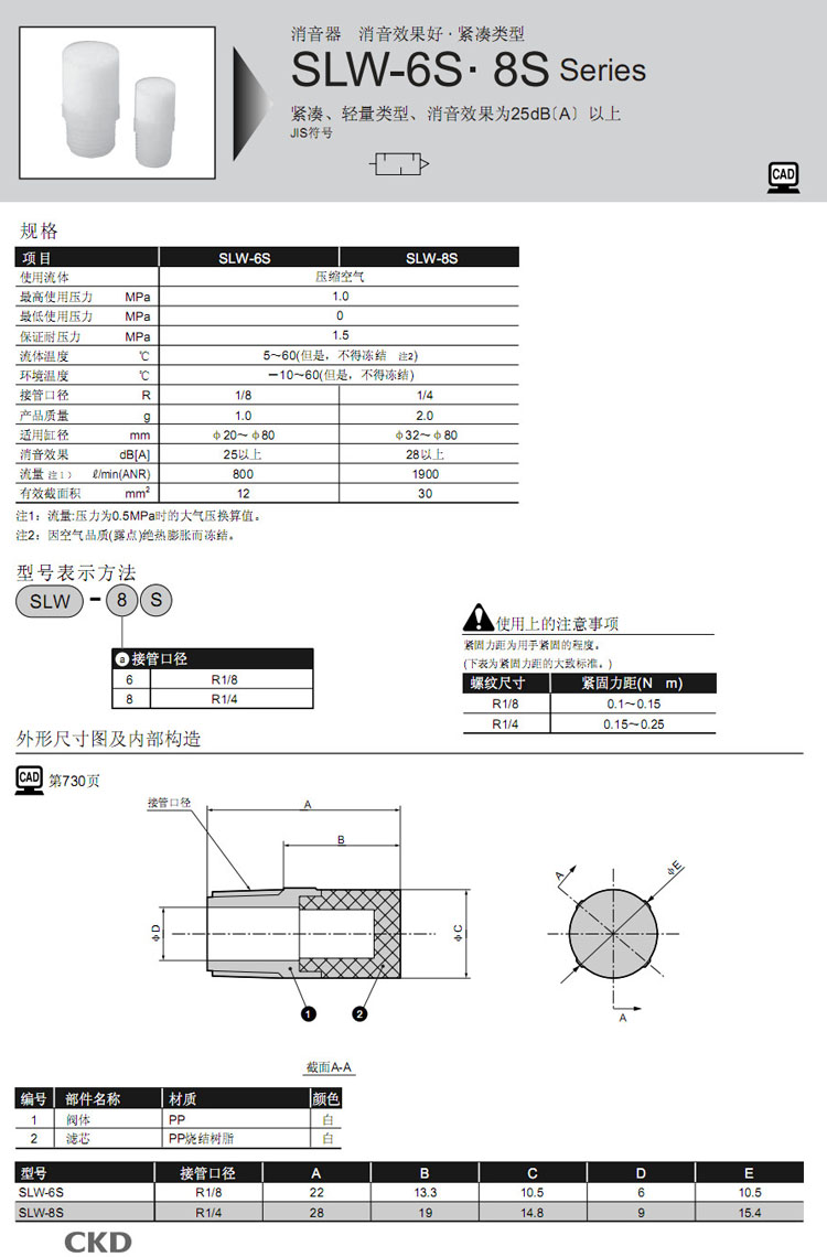 詳細(xì)信息 SLW-6S,SLW-8S,CKD消音器