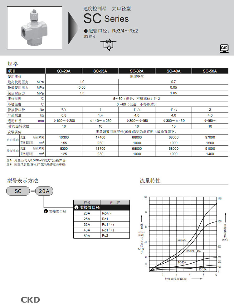 SC-20A,SC-25A,SC-32A,SC-40A,SC-50A,CKD速度控制器