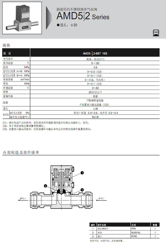 AMD512-8BT,AMD512-16S,AMD522-8BT,AMD522-16S,AMD532-8BT,AMD532-16S,CKD藥液用氣動(dòng)閥