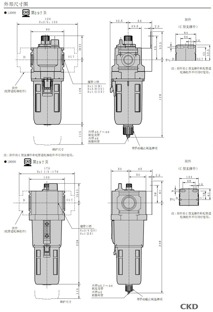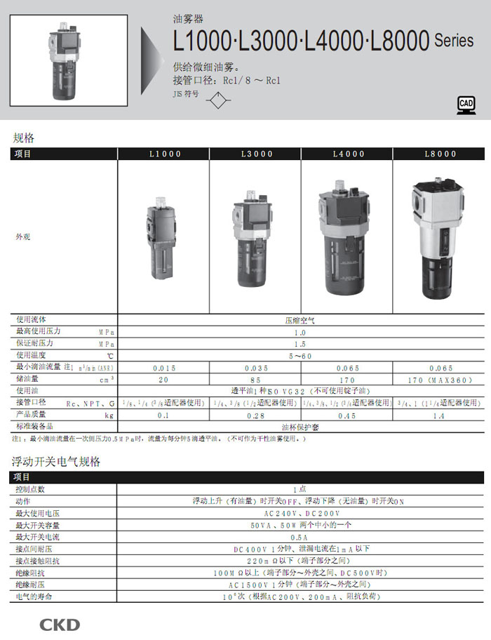 L1000-6,L1000-8,L3000-8,L1000-10,L4000-8,L4000-10,L4000-15,L8000-20,L8000-25,CKD油霧器
