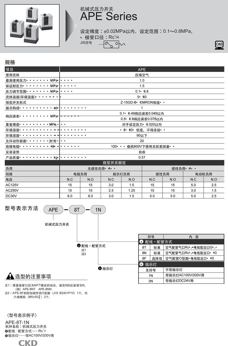 APE-8T,APE-8N,APE-8F,APE-8T-1N,APE-8T-3N,APE-8N-1N,APE-8F-1N,APE-8N-3N,APE-8F-3N,CKD壓力開關(guān)