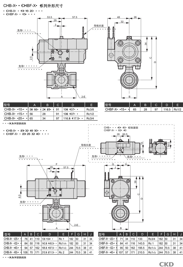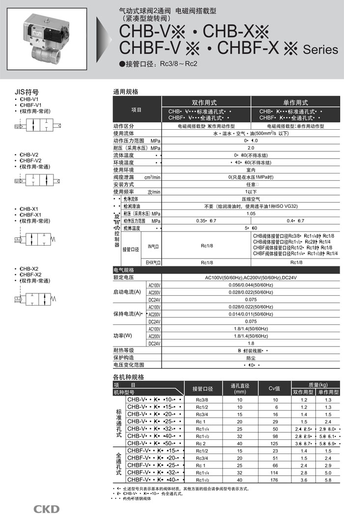 CHBF-V1-15,CHBF-V2-15,CHBF-X1-15,CHBF-X2-15,CHBF-V1-20,CHBF-V2-20,CHBF-X1-20,CKD氣動式球閥3通閥