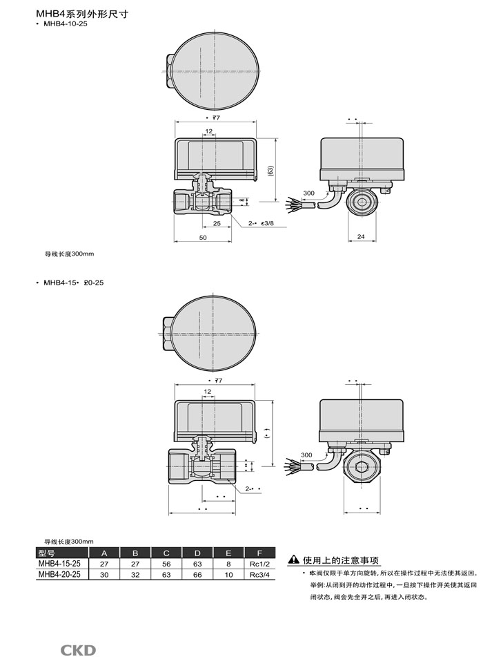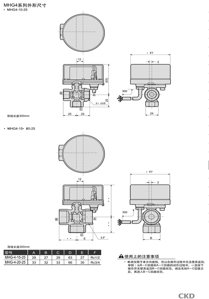 MHB4-10-25,MHB4-15-25,MHB4-20-25,MHG4-10-25,MHG4-15-25,MHG4-20-25,CKD電動式球閥2·3通電磁閥