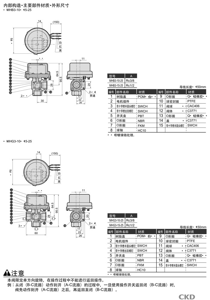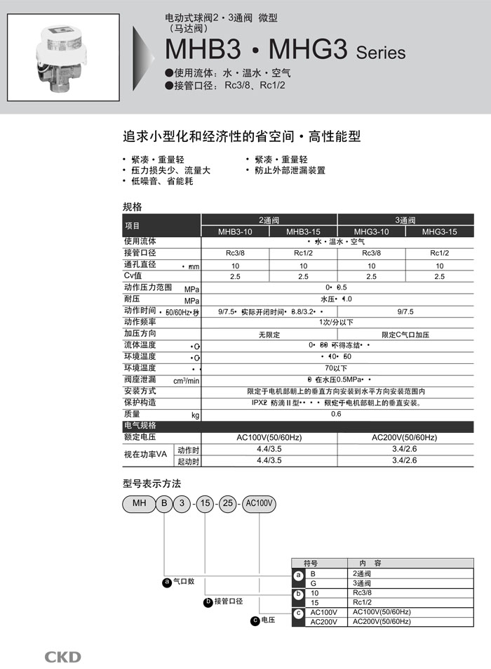 MHB3-10-25,MHB3-15-25,MHG3-10-25,MHG3-15-25,CKD電動(dòng)式球閥2·3通閥
