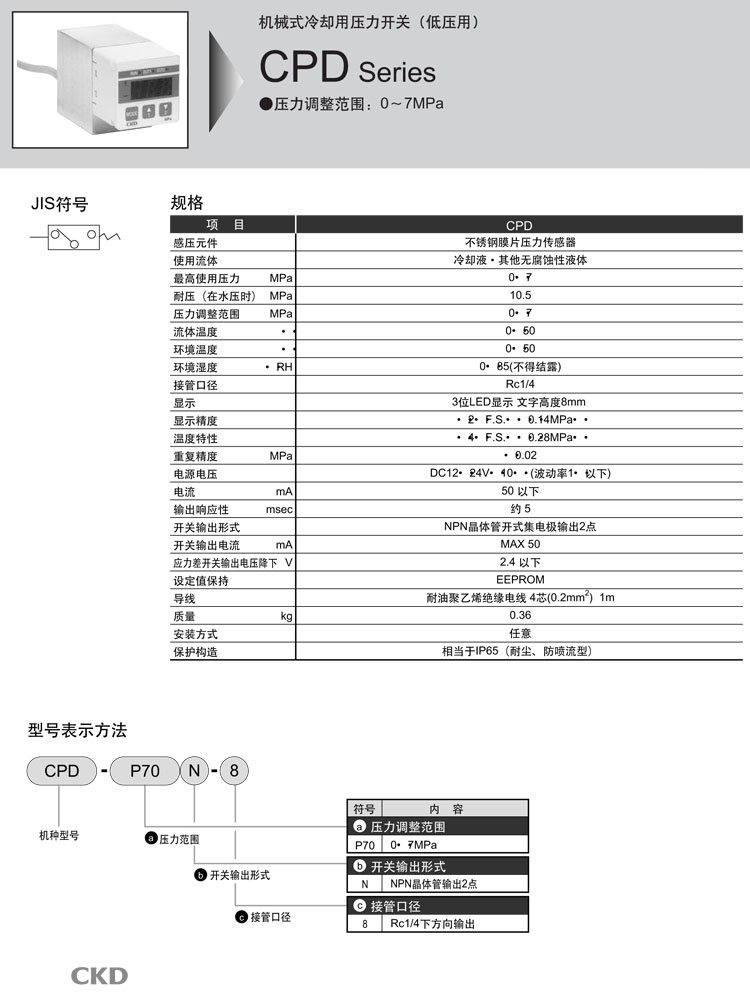 詳細信息 CPD-P70N-8,CKD壓力開關