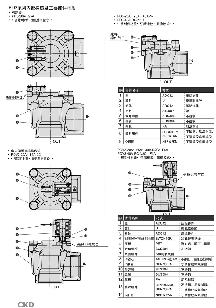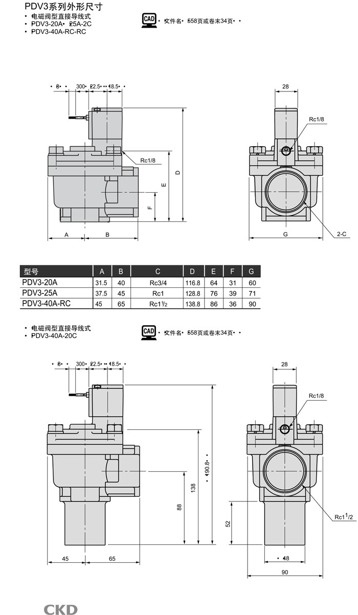 PD3-20A,PD3-25A,PD3-40A,PDV3-20A,PDV3-25A,PDV3-40A,PDV3-20A-2C-AC100V,PD3-20A-F,CKD先導(dǎo)式2通電磁閥