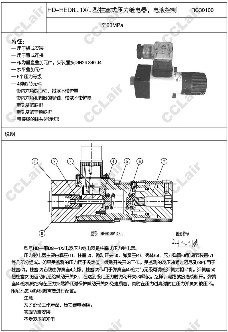 HED80,HED8OP,HED8OA,HED8OH,HED8OP1X/350K14S,HED8OA1X/100K14KW,huade柱塞式壓力繼電器