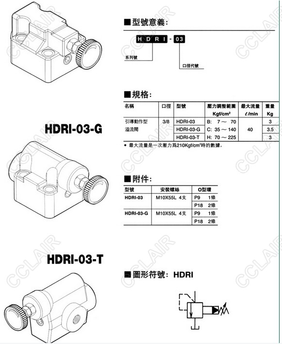 HDRI-03,HDRI-03-G,HDRI-03-T,引導(dǎo)動(dòng)作型溢流閥yuatsuseiki